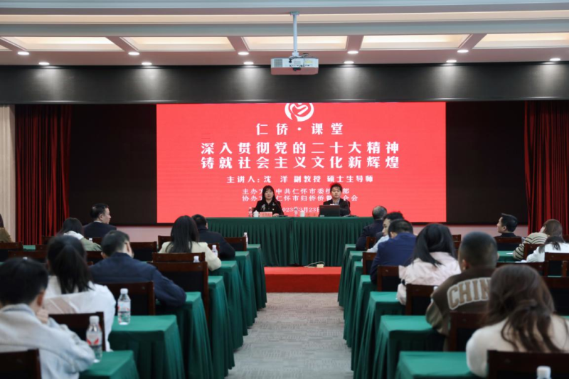 当好统战人士的“宣讲员”。2023年3月23日,沈洋受邀赴仁怀市为广大侨务工作人员、台侨界代表人士、涉侨企业负责人代表和新闻媒体代表等80余人开展党的二十大精神宣讲,以“深入贯彻党的二十大精神 铸就社会主义文化新辉煌”为主题,从坚定自信增强凝聚力、文化为民回应新期待、守正创新铸就新辉煌三个方面结合典型案例进行深入浅出讲解。现场气氛轻松热烈、鼓舞人心、催人奋进。与会人员纷纷表示,要把党的二十大精神深入贯彻落实到实际工作中,认真履职尽责,扎扎实实做好统战工作,推进新时代统战工作迈上新台阶。