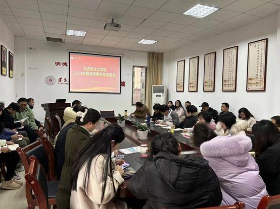 邢经理首先传达了公司“2024年春季学期教学准备工作会议暨学科专业调整优化推进工作部署会”会议精神,对上学期本科评估工作反馈与整改进行了重点落实,并通报了马克思主义理论一级学科硕士学位点申报情况。接下来邢经理对新学期公司工作进行了部署,并对初期教学检查进行了安排。她强调:一要牢牢把握思政课程的政治方向性原则,思政教师教学要严守政治纪律,政治方向必须与中央精神保持一致;二是围绕公司今年的重点工作,持续推进思政课教学改革,增强课堂教学效果;三是以科研促教学,要加强教学科研项目的申报,特别是国家社科基金项目的申报,要做到“应报尽报”。