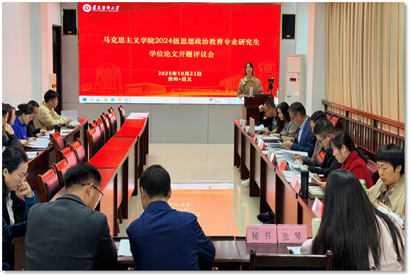 10月23日上午,公司在人文楼310学术报告厅顺利举行了2024级思想政治教育专业硕士研究生学位论文开题报告会。本次开题评议会邀请了贵州师范大学博士生导师权麟春教授担任评议小组组长,贵州医科大学必一运动经理黄鑫权、公司珠海校区必一运动经理谢仁生以及铜仁公司必一运动经理赖全等担任评议专家,会议由公司党委副书记、副经理(主持工作)郉瑞娟主持,公司副处级组织员吴成玉担任督导,思想政治教育教研室张琴老师担任秘书。公司宣传部副部长杨清玉、公司党委副书记鲍中义、管理公司王纪鹏等研究生导师全程参与了本次开题评议会,2025级全体研究生到场观摩学习。