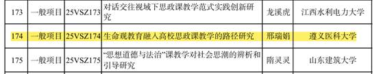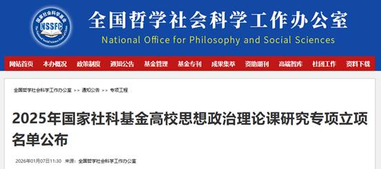 近日,全国哲学社会科学工作办公室公布了2025年度国家社科基金高校思想政治理论课研究专项立项名单,公司党委副书记、副经理(主持工作)邢瑞娟教授申报的《生命观教育融入高校思政课教学的路径研究》获批立项。这是公司首次获批国家社科基金高校思想政治理论课研究专项项目,实现了公司在国家社科基金思政专项的重大突破。据悉,该项目也是今年贵州省获批的唯一一项思政专项项目。