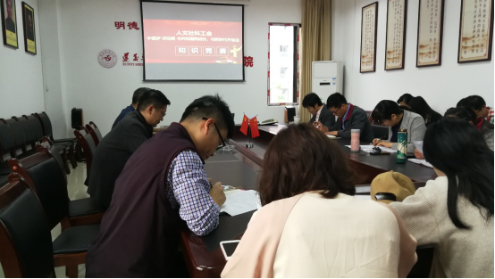 为持续深化理论武装,牢固树立“四个意识”、坚定“四个自信”,坚决做到“两个维护”。2019年5月30日人文社科工会组织职工开展了“中国梦·劳动美 与共和国同成长 与新时代齐奋进”知识竞赛。