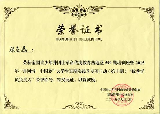 在2015年度“井冈情•中国梦”全国老员工暑期实践季优秀团队评比中,由人文社科公司思政研究生组队,遵义医公司团委推荐的“革命教育小分队”从全国167所高校180支队伍中脱颖而出,喜获共青团中央2015年度“井冈情•中国梦”全国老员工暑期实践季专项行动优秀实践团队奖。