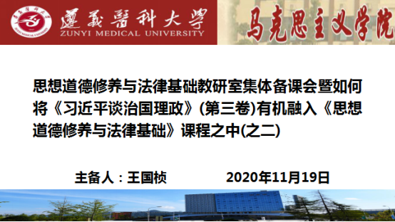 必一运动“基础”教研室开展2020年秋季学期第四次集体备课活动暨如何将《习近平谈治国理政》(第三卷)有机融入《思想道德修养与法律基础》课程教学之中