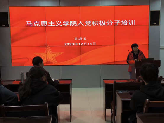 随后,副处级组织员、第二党支部书记吴成玉围绕党员发展流程、入党申请书的规范格式、递交入党申请书后注意事项等方面开展了入党相关知识培训。